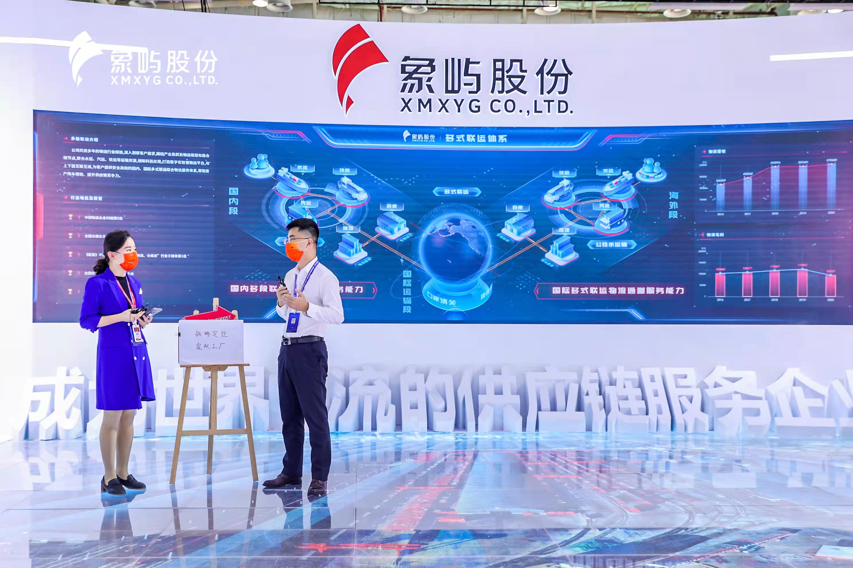 天屏地屏主屏三屏互動(dòng), 全景地屏展現(xiàn)了象嶼股份農(nóng)產(chǎn)品、能源化工、金屬礦產(chǎn)供應(yīng)鏈板塊的業(yè)務(wù)亮點(diǎn),通過東北象嶼糧倉、陜西場(chǎng)站、印尼不銹鋼冶煉項(xiàng)目等典型項(xiàng)目實(shí)景展示,進(jìn)一步詮釋象嶼業(yè)務(wù)模式及國際化發(fā)展!