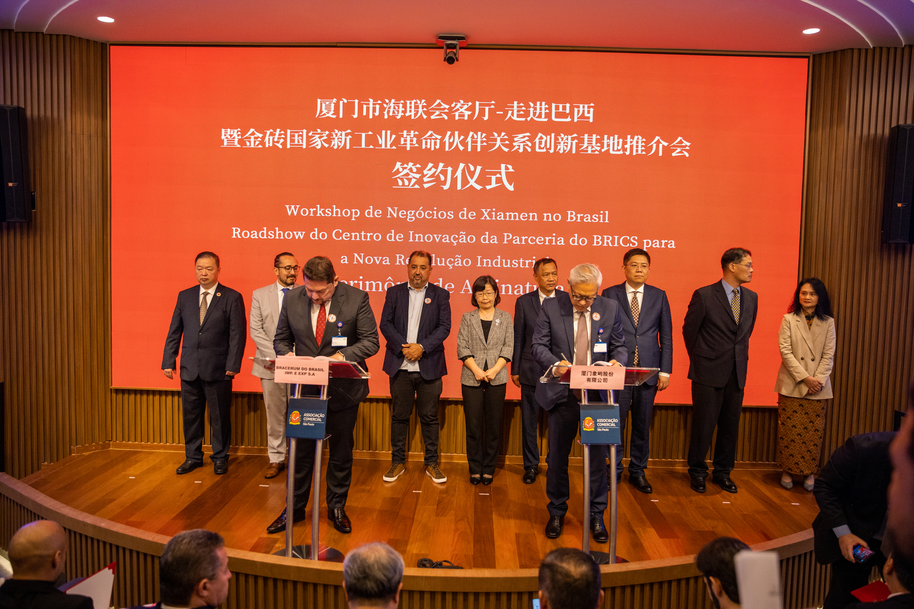 近日,廈門市海聯(lián)會(huì)客廳——走進(jìn)巴西暨金磚國家新工業(yè)革命伙伴關(guān)系創(chuàng)新基地推介會(huì)在巴西圣保羅舉辦,象嶼股份與BRACERUM DO BRASIL IMPORTAÇÃO E EXPORTAÇÃO S.A(以下簡(jiǎn)稱“巴西BD”)在會(huì)上簽署戰(zhàn)略合作協(xié)議,廈門市市長(zhǎng)黃文輝,毛阿市市長(zhǎng)、圣保羅市長(zhǎng)聯(lián)盟主席馬塞洛·奧利維拉及雙方有關(guān)領(lǐng)導(dǎo)出席并見證簽約。